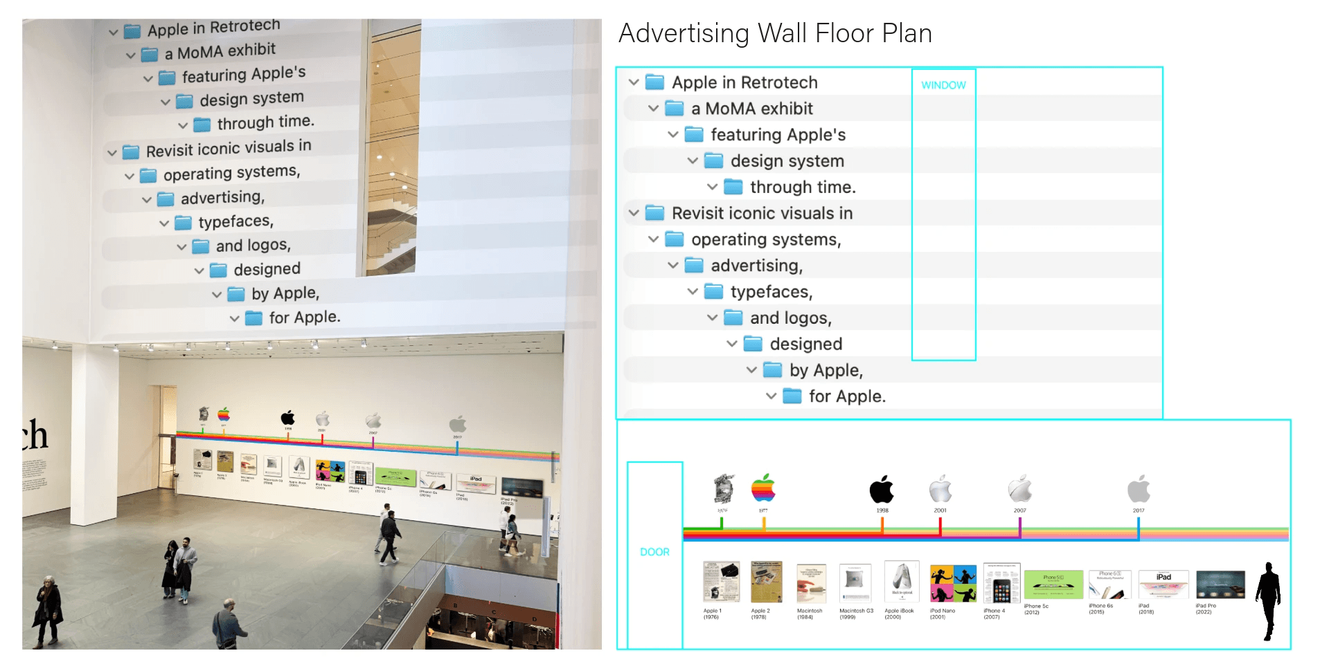Inspired by the MoMA’s Pirouette: Turning Points in Design exhibition, a classmate and I worked together to feature Apple in a new light. Rather than focusing on physical products that Apple is known for, our exihibit focused on the design systems throughout the company’s lifetime. This project features exhibition design, related materials and takeaways.